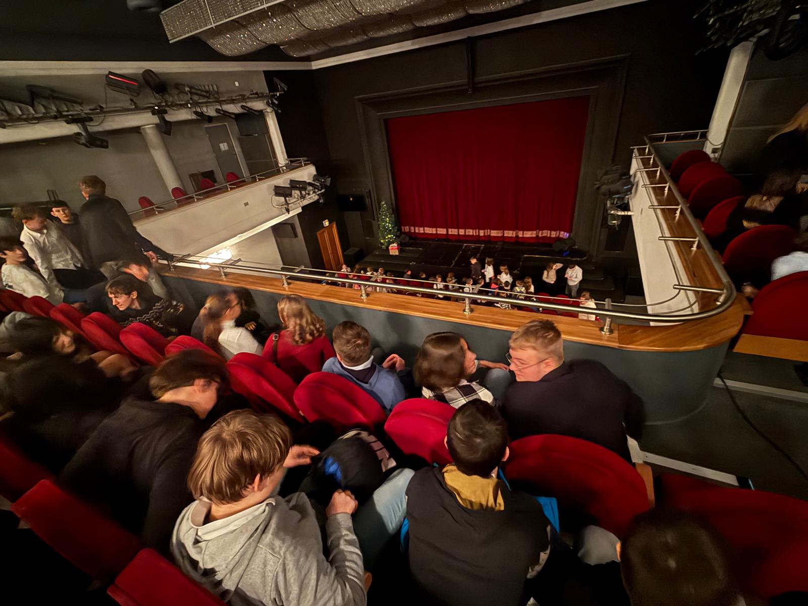 Uczniowie klas ósmych z wychowawczyniami obejrzeli,, Opowieść wigilijną" w wykonaniu aktorów Teatru Zagłębia w Sosnowcu. Oglądając przedstawienie, mogli utwierdzić się w przekonaniu, że należy nieść pomoc ubogim, opuszczonym, samotnym i pokrzywdzonym przez los, docenić wartość rodziny i magię świąt Bożego Narodzenia, poznać piosenki Leonarda Cohena i wsłuchać się w przesłanie zawarte w,, Hymnie o miłości " Świętego Pawła.