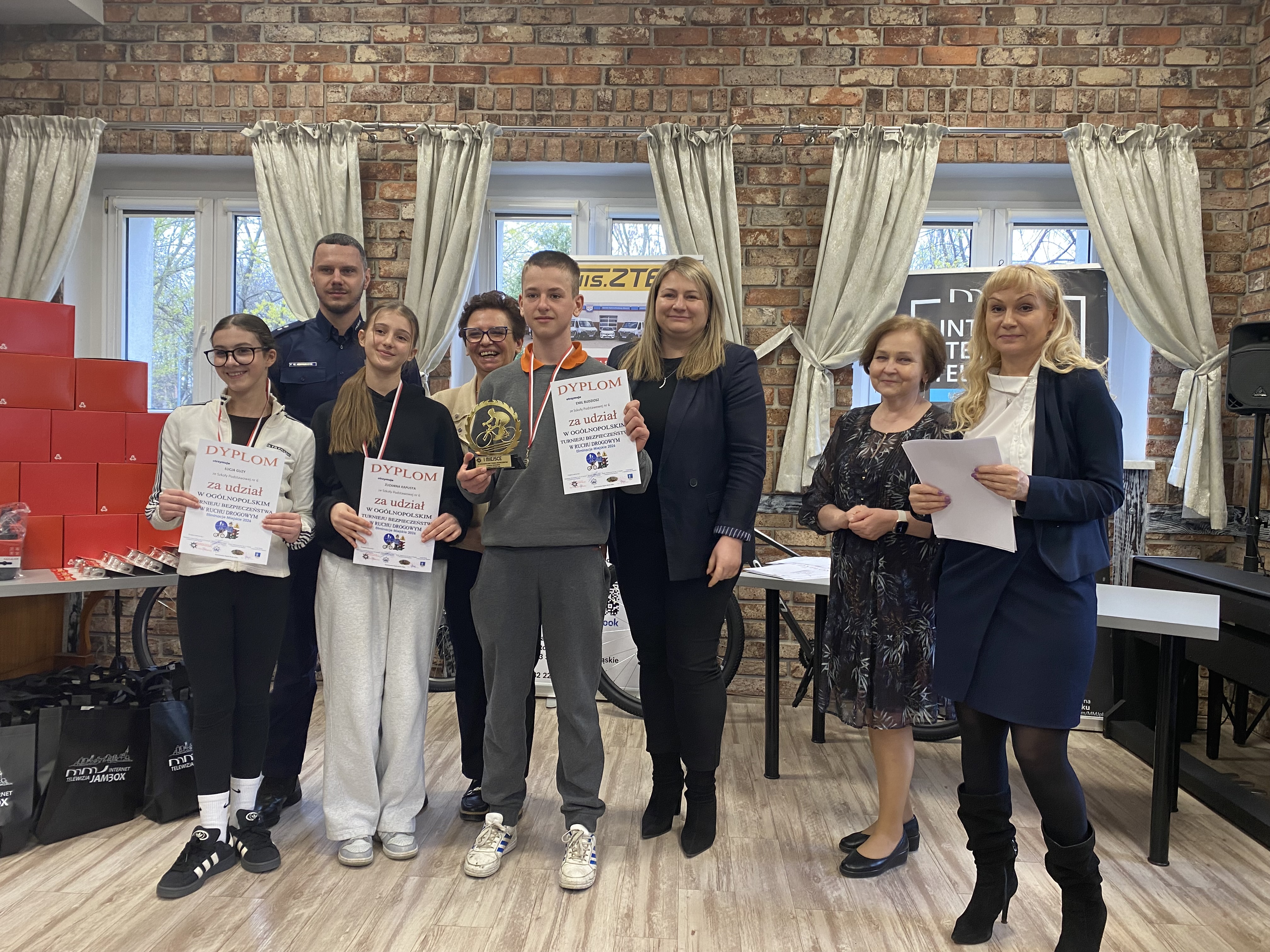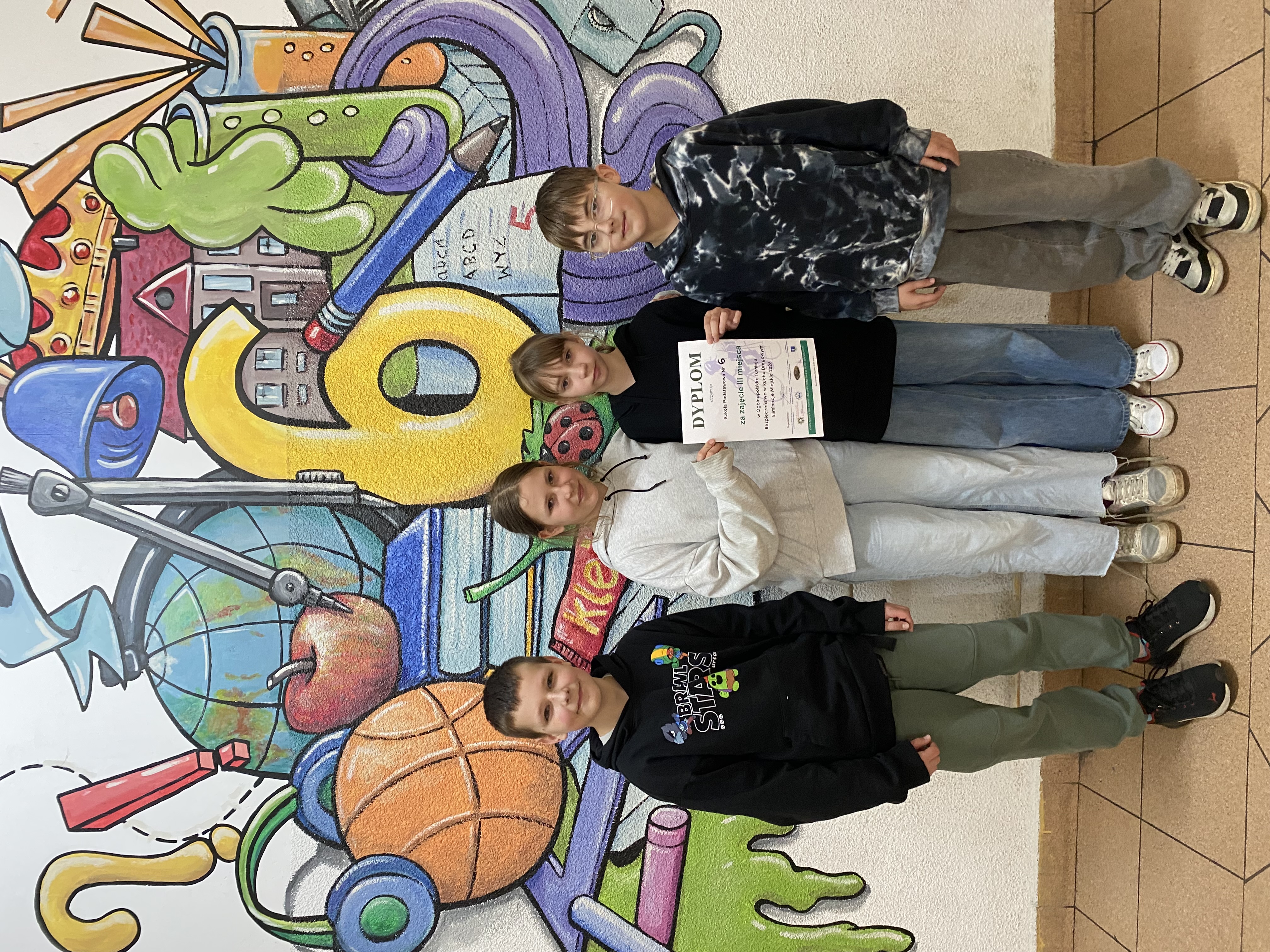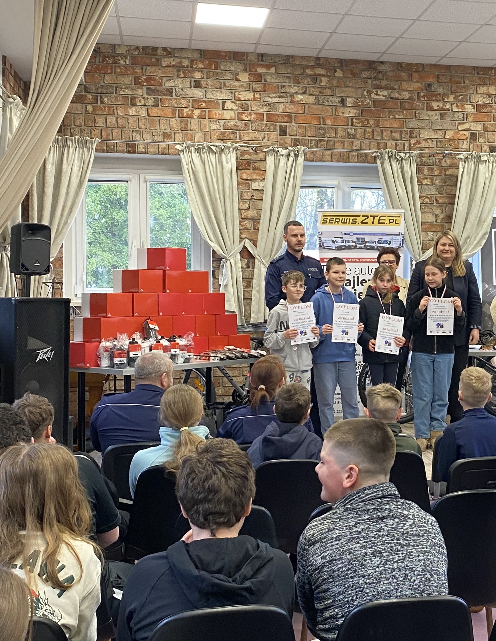 W dniu 9 kwietnia br. odbyły się miejskie eliminacje Turnieju Bezpieczeństwo w Ruchu Drogowym. Naszą szkołę reprezentowały dwie drużyny: starsza (Łucja, Zuzia, Emil) oraz młodsza (Gabrysia, Helena, Paweł i Filip). Konkurs składał się z napisania testu z wiedzy o ruchu drogowym, udzieleniu pierwszej pomocy, przejechaniu toru przeszkód oraz bezbłędnym przejechaniu wyznaczonej trasy w miasteczku ruchu drogowego.