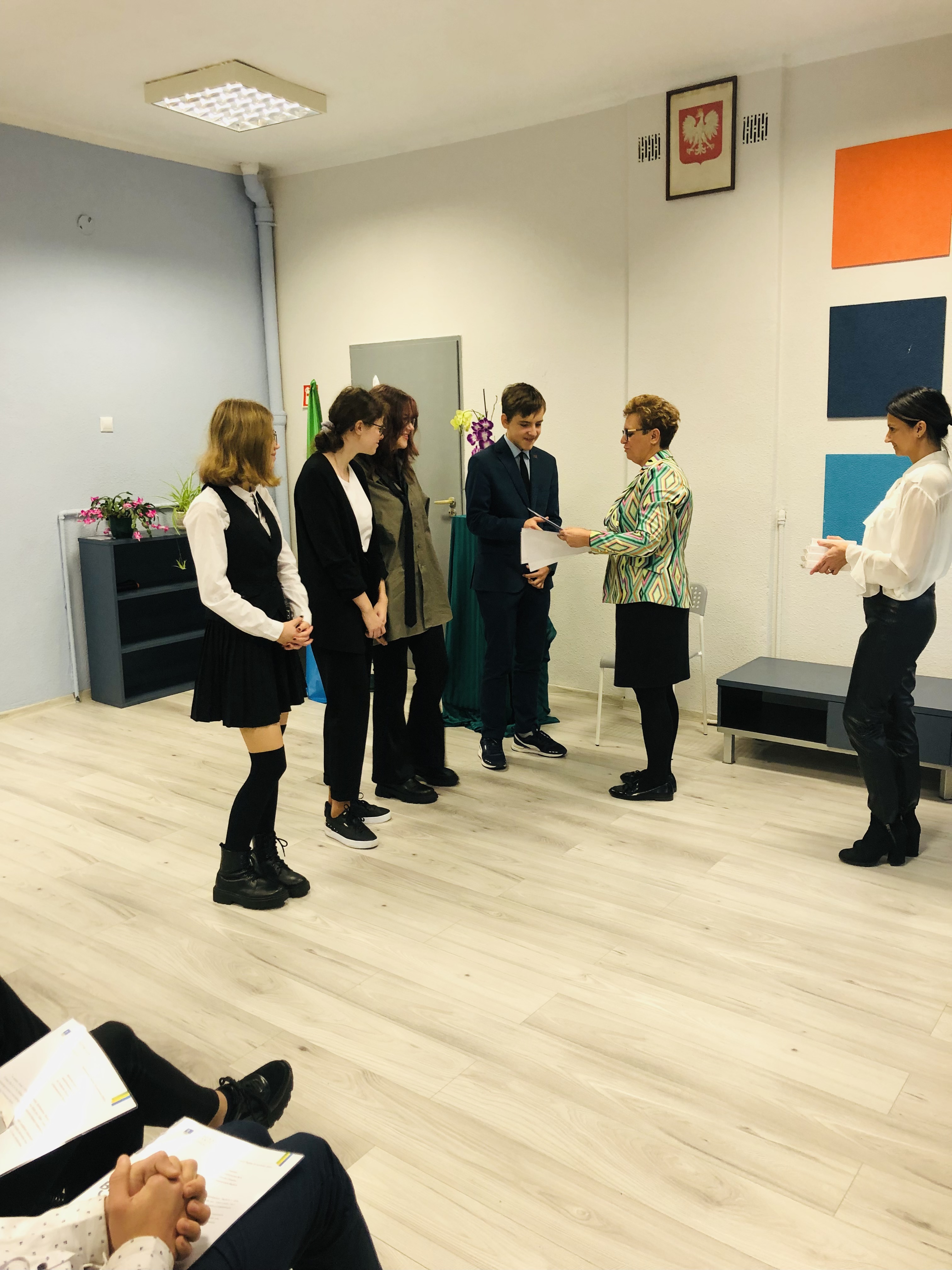 Była to znakomita okazja do pochwalenia się osiągnięciami naszych uczniów w bieżącym roku szkolnym i zaprezentowania ich talentów. Julia Kryś i Dominika Brocka zadeklamowały wiersze Z. Herberta, które przygotowały na międzyszkolny konkurs recytatorski, a Oliwia Cissek odczytała nagrodzony w konkursie literackim tekst swojego autorstwa.