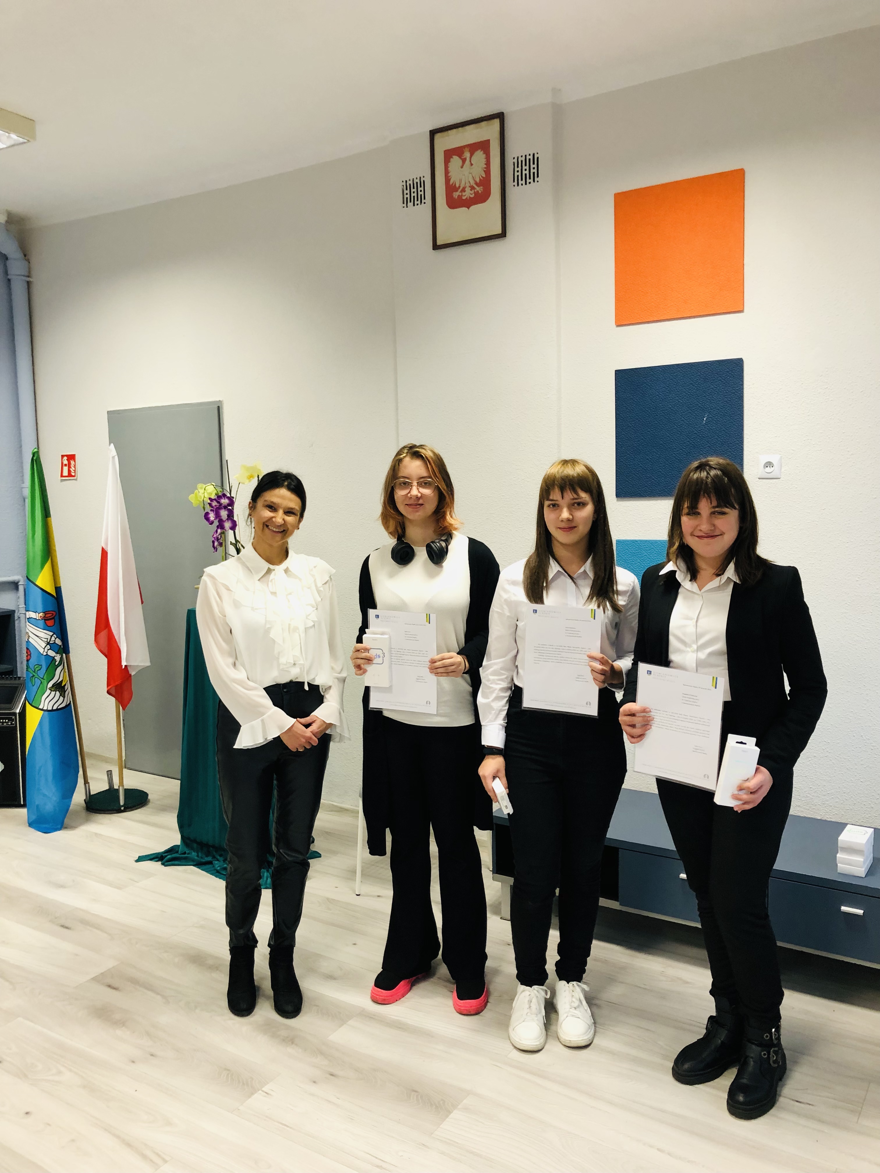Pani dyrektor Izabela Kurzyca i pani wicedyrektor Aurelia Tomaszewska wręczyły w imieniu Pana Prezydenta listy gratulacyjne uczniom i nagrody za bardzo dobre wyniki w nauce.