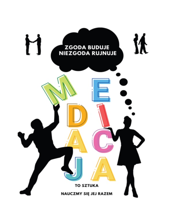 Uprzejmie informuję, że Ministerstwo Sprawiedliwości organizuje, skierowany do dzieci i młodzieży, konkurs na plakat. Zadanie konkursowe polega na stworzeniu plakatu promującego mediację i Międzynarodowy Dzień Mediacji 2023. Zachęcam do udziału. Na zwycięzców czekają atrakcyjne nagrody: hulajnoga elektryczna, tablety, słuchawki bezprzewodowe, opaski Smartband, dyplomy oraz zaproszenia na spotkanie w Ministerstwie Sprawiedliwości. Prace można przesyłać do dn. 09 czerwca 2023 r. Ogłoszenie wyników konkursu nastąpi 18 września 2023 r. Szczegóły znajdują się w regulaminie na stronie: https://www.gov.pl/web/sprawiedliwosc/konkurs-na-plakat-promujacy-miedzynarodowy-dzien-mediacji-2024. Poniżej zwycięski plakat przygotowany na Międzynarodowy Dzień Mediacji w roku 2022.