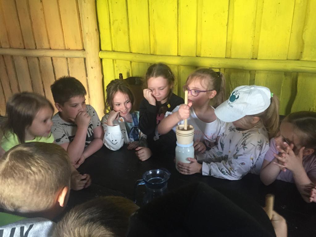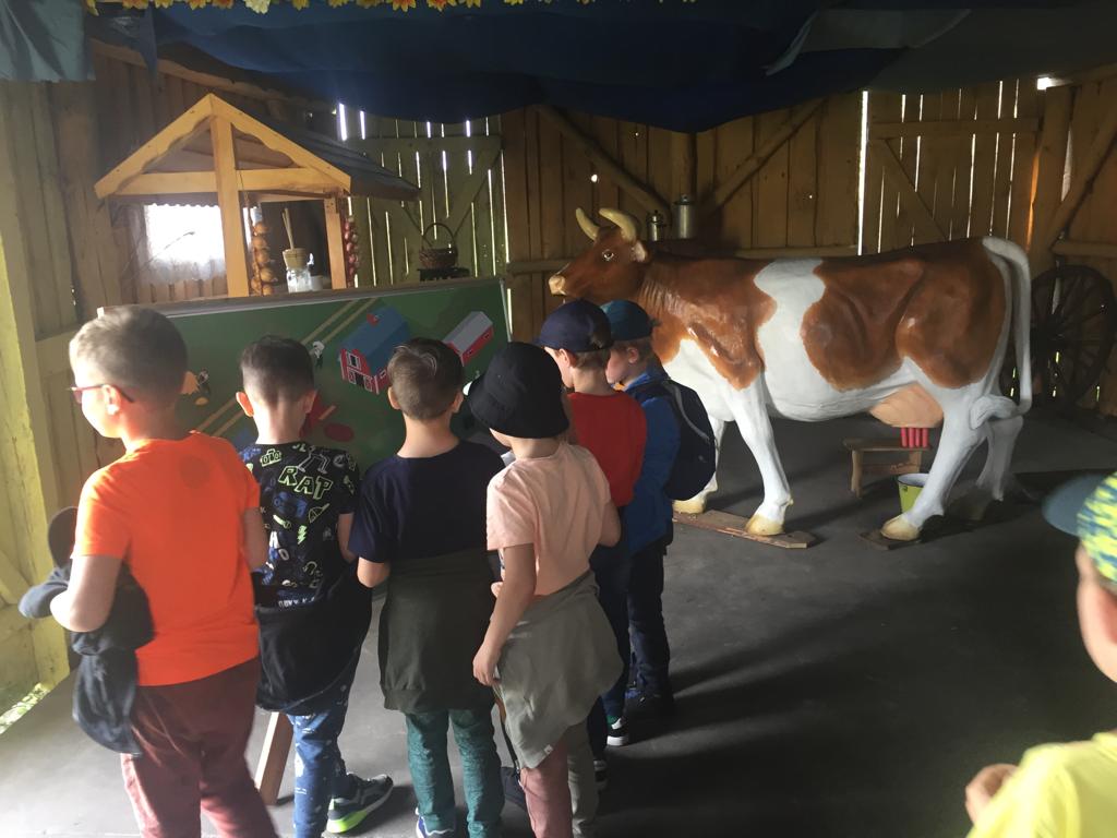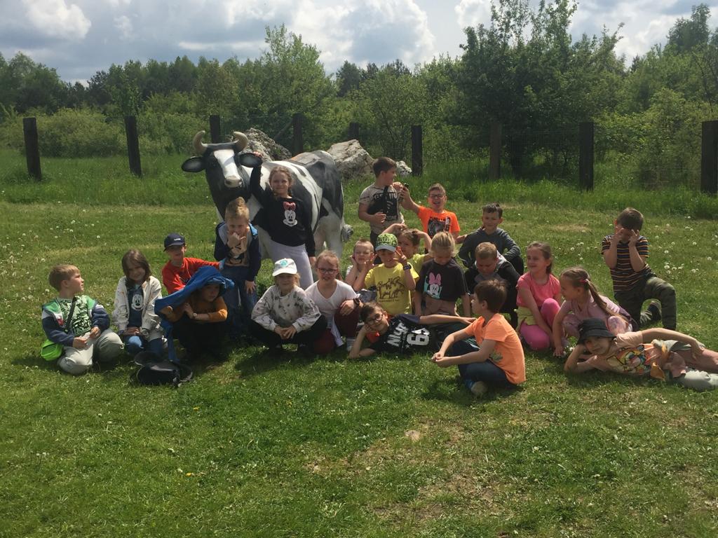 Klasy pierwsze 16 maja były na wycieczce w Żarkach w „Agroskałce”. Zwiedzały tam z przewodnikiem mini ZOO i skansen. Miały godzinne warsztaty ekologiczne, podczas których doiły sztuczną krowę, ubijały masło i degustowały je z chlebem. Okolicę „Agroskałki” zwiedziły podczas przejażdżki „pociągiem” na kołach. Gospodarze byli bardzo gościnni. Poczęstowano nas herbatą i ciastkami. Dostaliśmy watę cukrową na patyku, a w porze obiadowej zjedliśmy pyszną zupę pomidorową. Był też czas na gry i zabawy na świeżym powietrzu. Wycieczka wszystkim bardzo się podobała.