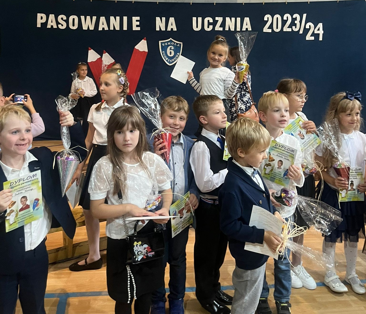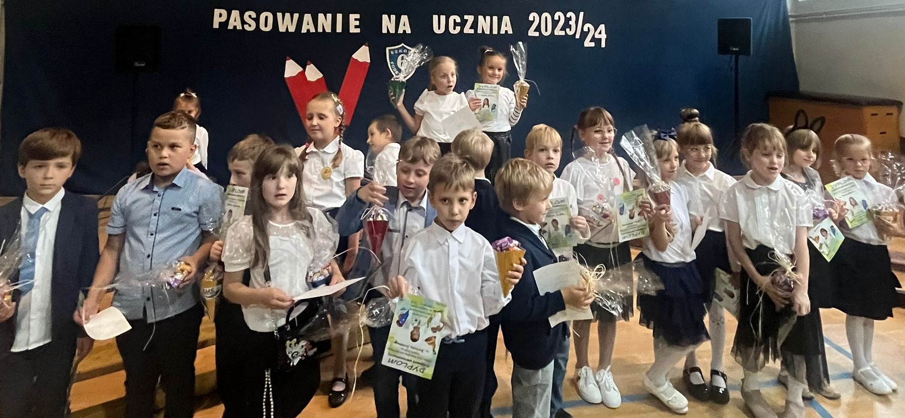 25 września 2023 r. odbyła się w naszej szkole uroczystość pasowania na ucznia. Na to niezwykle ważne wydarzenie i pierwszy wspólny występ czekały wszystkie pierwszaki. Naszą uroczystość licznie zaszczyciły swą obecnością rodziny pierwszoklasistów. Przybyli też zaproszeni goście: p. Beata Gałecka - II zastępca Prezydenta Miasta, p. Oliwia Mroczkowska- starszy inspektor Wydziału Edukacji UM, p. Joanna Świątek- przedstawiciel Stowarzyszenia Mieszkańców Siemianowic, p. Marcin Janota- Radny Miasta i członek SMS oraz p. Jan Nycz - Radny Miasta i członek SMS. Uroczystość rozpoczął występ pierwszoklasistów, w czasie którego dzieci mogły pochwalić się zdobytą wiedzą i umiejętnościami, a największe wrażenie zrobiły umiejętności wokalne uczniów. Po części artystycznej p. Dyrektor dokonała pasowania, a następnie każde dziecko otrzymało słodki upominek. Na zakończenie odbyła się sesja fotograficzna. To było bardzo wzruszające wydarzenie, zarówno dla dzieci jak i rodziców.