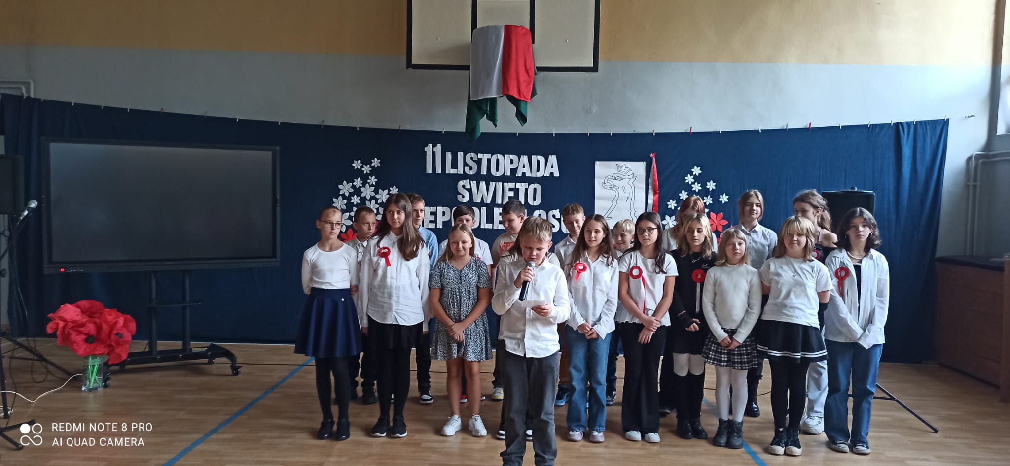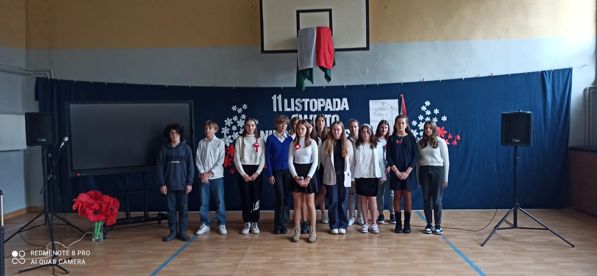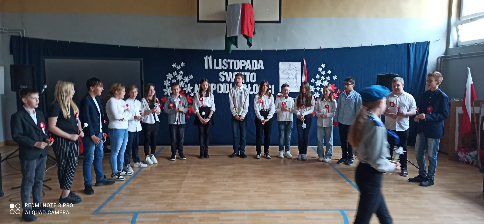 Uroczystość tę poprowadzili uczniowie i uczennice klasy 8a i 7a, którzy każdą pieśń poprzedzili komentarzem dotyczącym jej powstania.
