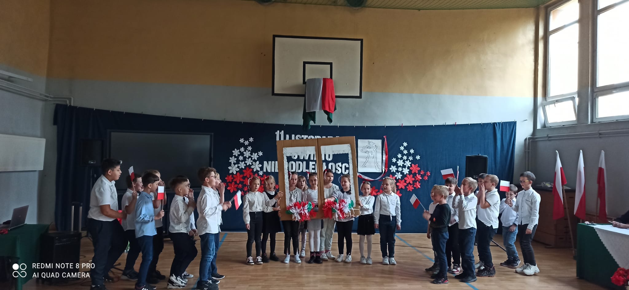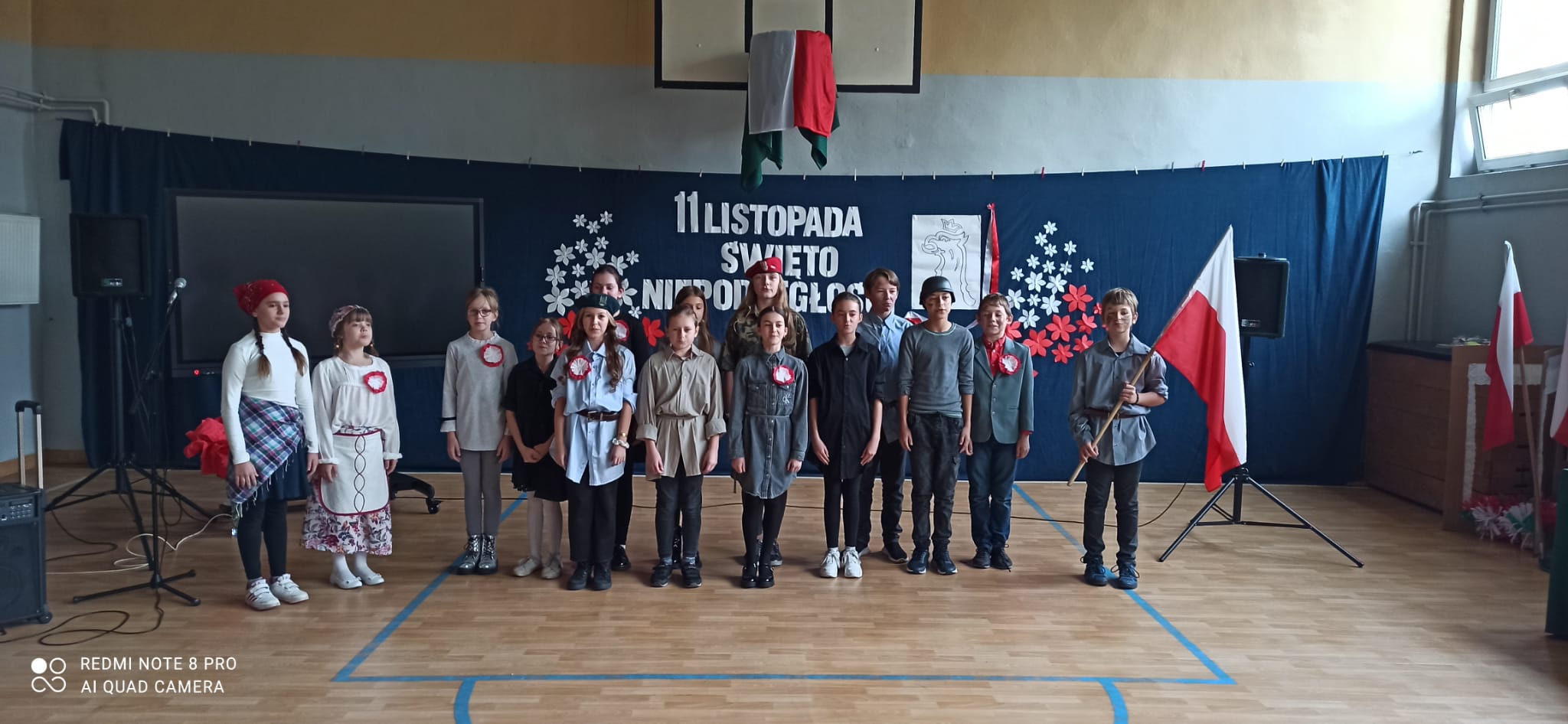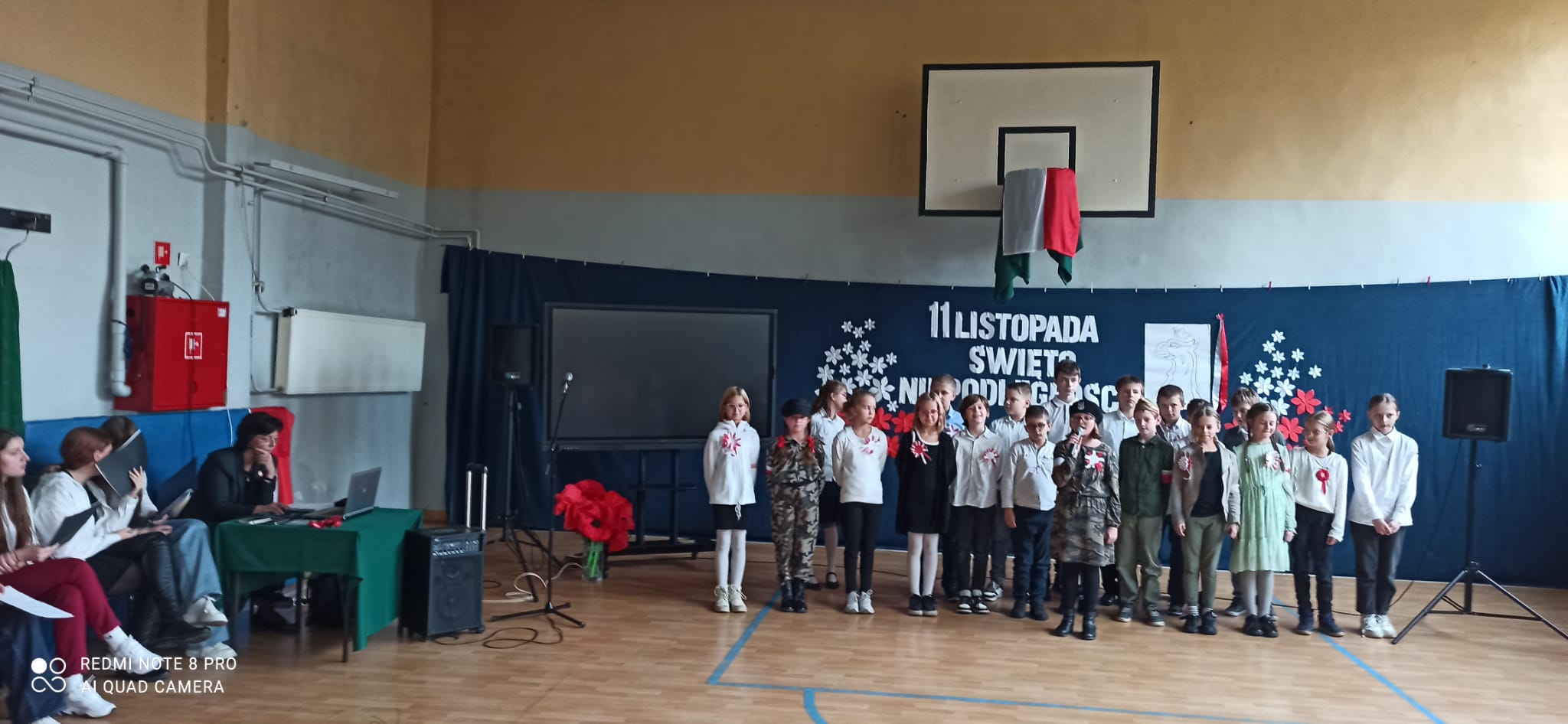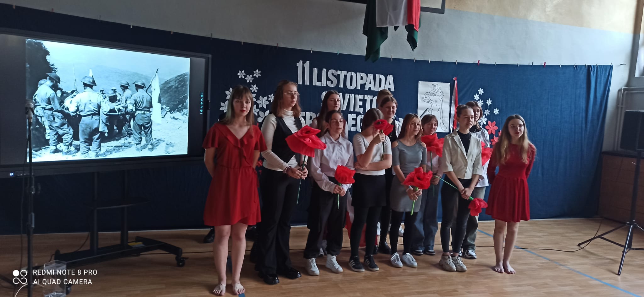 Uroczystość tę poprowadzili uczniowie i uczennice klasy 8a i 7a, którzy każdą pieśń poprzedzili komentarzem dotyczącym jej powstania.