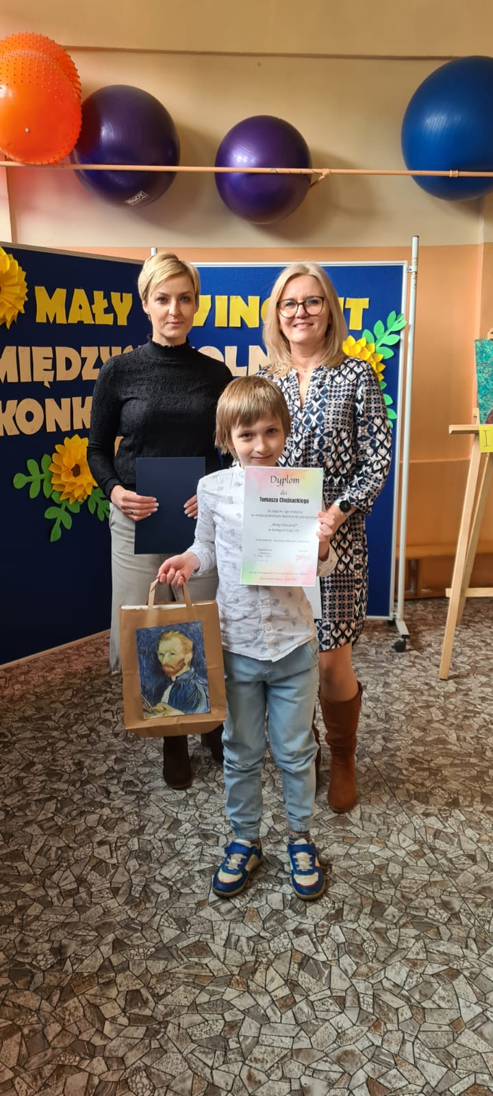 Tomasz Ch. z klasy 2b został laureatem I miejsca w międzyszkolnym konkursie plastycznym "Mały Vincent", w kategorii klas I-III. Wczoraj w SP nr3 odebrał nagrodę rzeczową oraz dyplom. Podziwialiśmy też wystawę bardzo interesujących prac pozostałych uczestników konkursu. Tomkowi bardzo gratulujemy tego sukcesu.