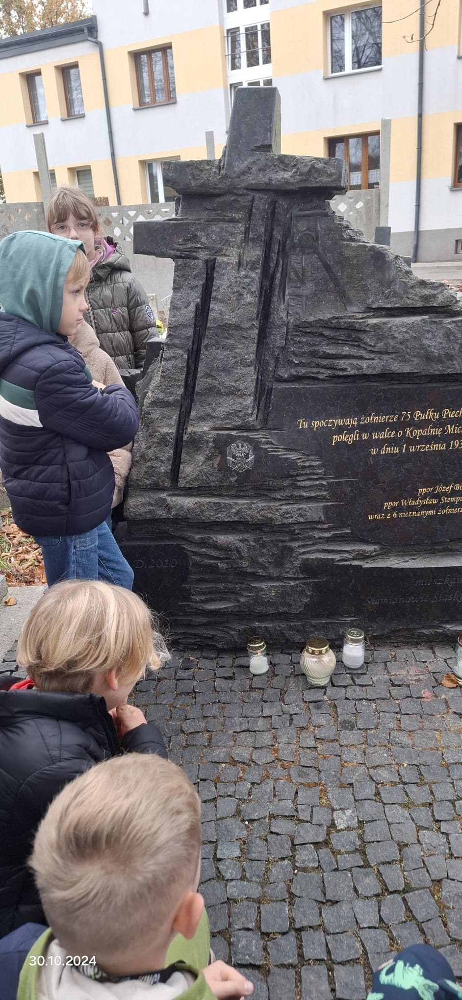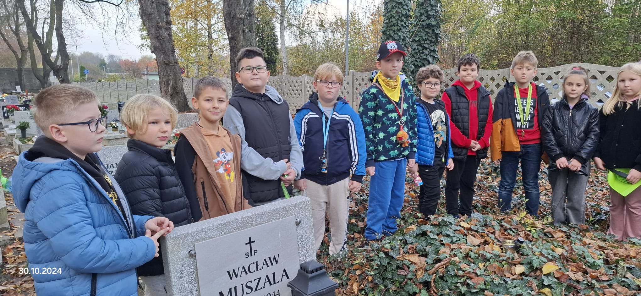 Przełom października i listopada to czas zadumy i refleksji. Wspominamy tych, którzy odeszli, odwiedzamy ich groby, palimy znicze. Jednak nie wszyscy zmarli mają tyle szczęścia... 30 października klasy IIa i IIIb odwiedziły cmentarz przy ul. Michałkowickiej. Uczniowie zapalili znicze na grobie polskich żołnierzy 75 Pułku Piechoty, którym nasza szkoła opiekuje się w ramach ogólnopolskiego projektu "Szkoła Patriotów ". To wyraz naszej pamięci o wsparciu, jakiego udzielili Oni obrońcom kopalni "Michał ". Dzieci uprzątnęły też kilka opuszczonych grobów i zapaliły na nich "światełka pamięci "- żeby jednak ktoś pamiętał.
