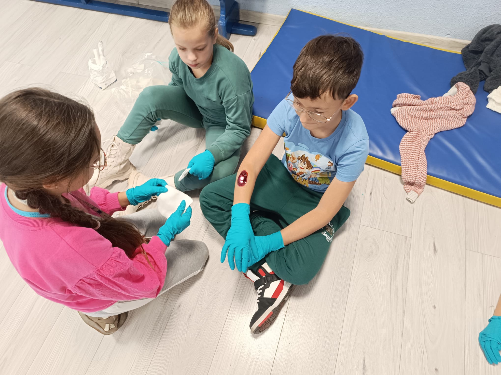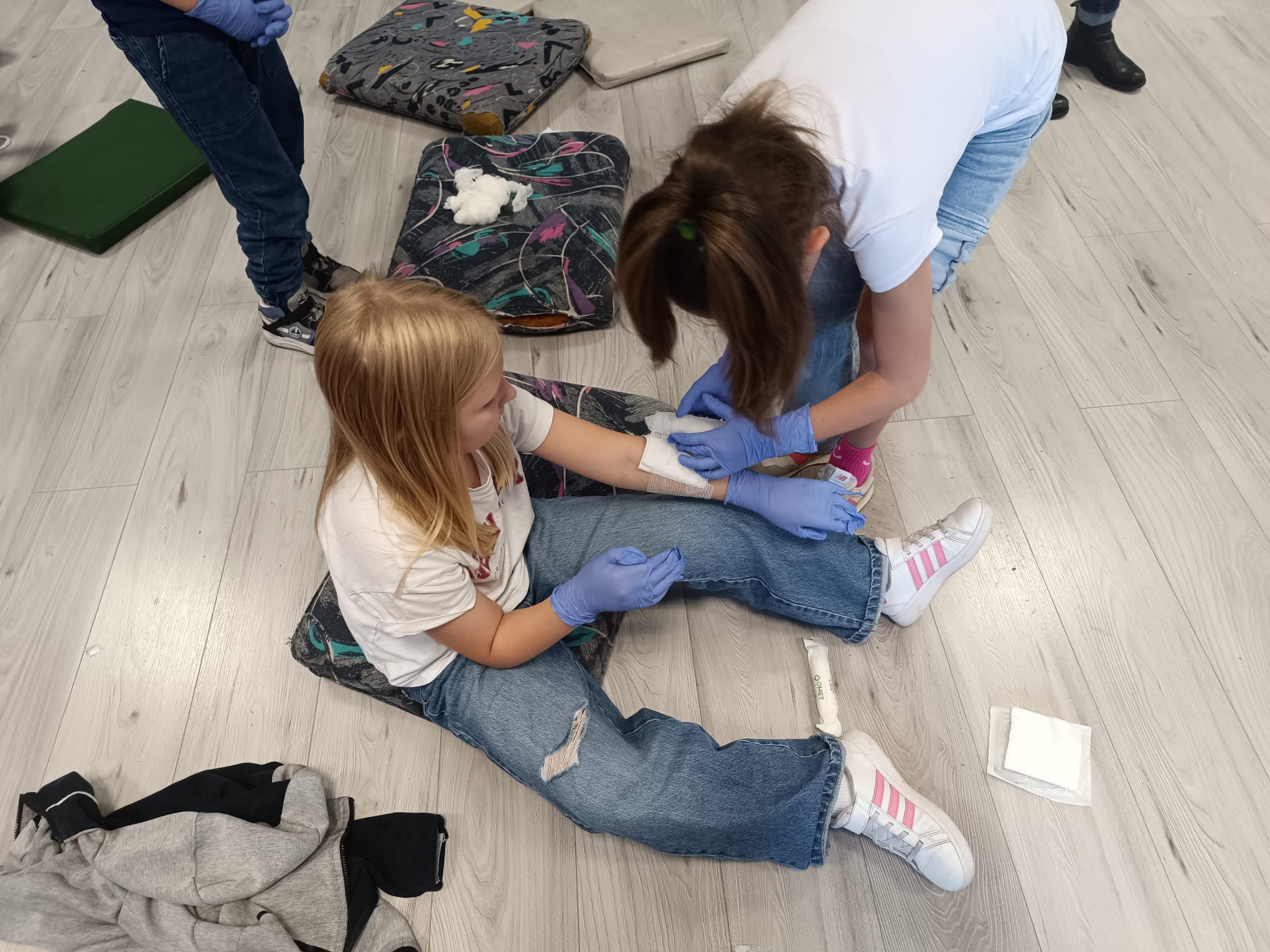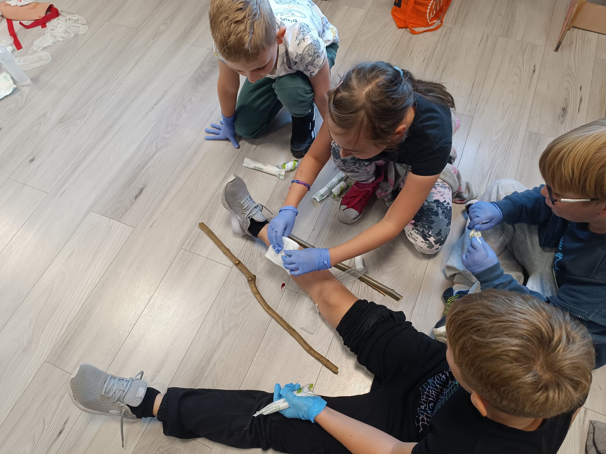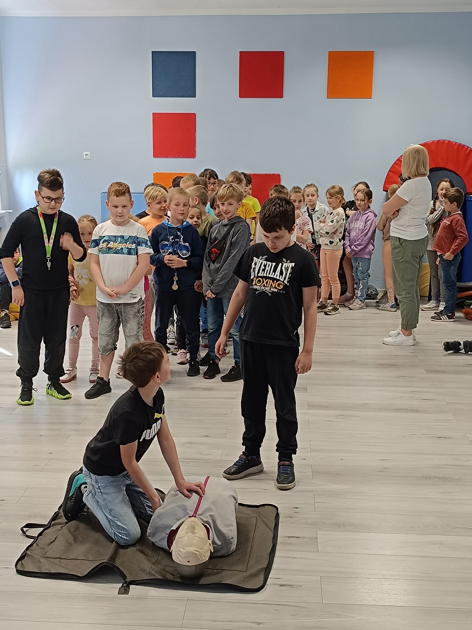 Klasy I-III naszej szkoły uczestniczyły w spotkaniu z Panem Krzysztofem Karasiem, strażakiem Komendy Miejskiej Państwowej Straży Pożarnej w Siemianowicach Śląskich. Nasz gość przybliżył uczniom podstawowe zasady udzielenia pierwszej pomocy przedmedycznej. Pomocnikami Pana Krzysztofa byli: Adą, Kacper i Tomek, nasi trzecioklasiści, którzy należą do Młodzieżowej Drużyny Pożarniczej Ochotniczej Straży Pożarnej w naszym mieście. Uczniowie zobaczyli prawidłowo przeprowadzoną resuscytację krążeniowo-oddechową, wspomaganą defibrylacją aparatem AED. Na fantomach mogli samodzielnie sprawdzić swoje umiejętności wykonania masażu serca. Następnie Uczniowie klas trzecich pod kierunkiem Pana Krzyśka uczyli się fachowo opatrywać krwawiące rany i usztywniać złamaną nogę. Wszyscy byli bardzo zadowoleni z dzisiejszego spotkania, za które bardzo dziękujemy Panu Krzysztofowi. W samo południe biliśmy rekord w jednoczesnej resuscytacji krążeniowo- oddechowej, akcji zorganizowanej przez Fundację WOŚP.
