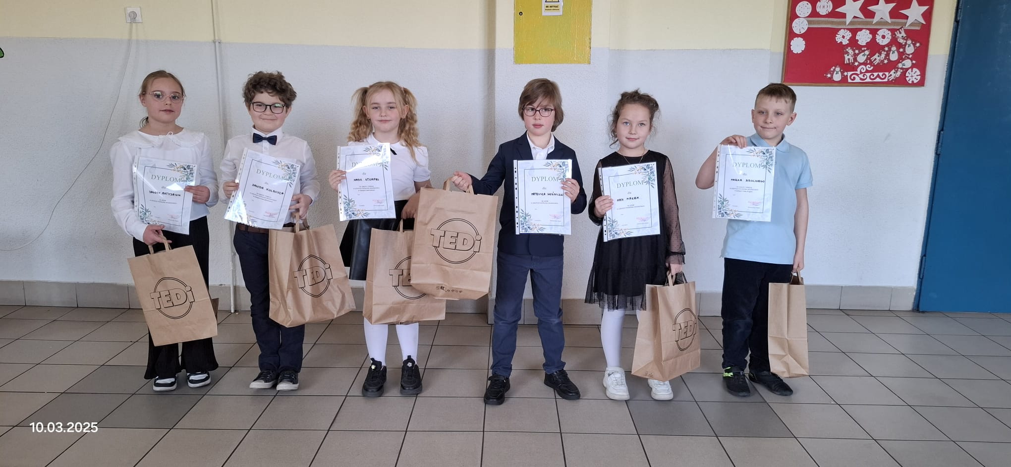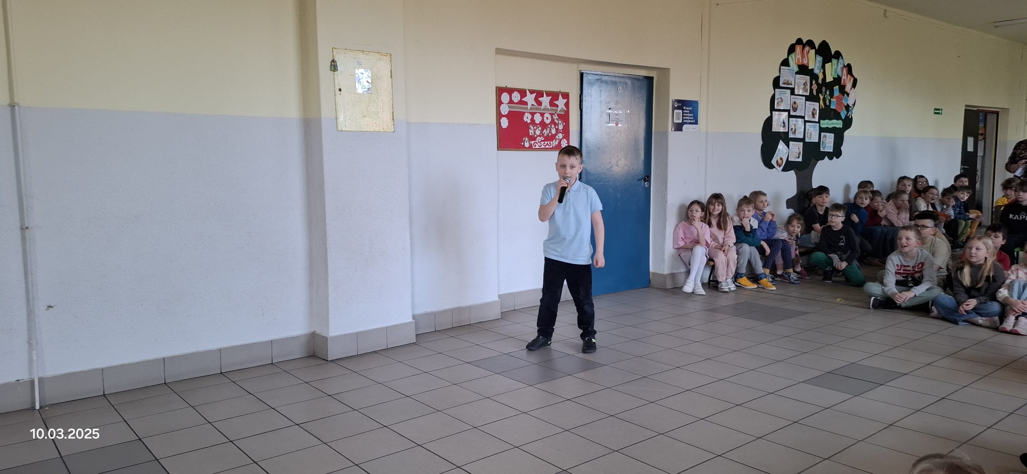 -w klasach trzecich wygrał Dawid z klasy IIIb. W konkursie brali też udział: Mateusz z kl. Ia, Maja z kl. IIa oraz Jagoda z kl.IIIa. Wszystkim uczestnikom serdecznie gratulujemy i będziemy trzymać za nich kciuki podczas konkursu na szczeblu miejskim, który odbędzie się 19 marca w MDK "Jordan".