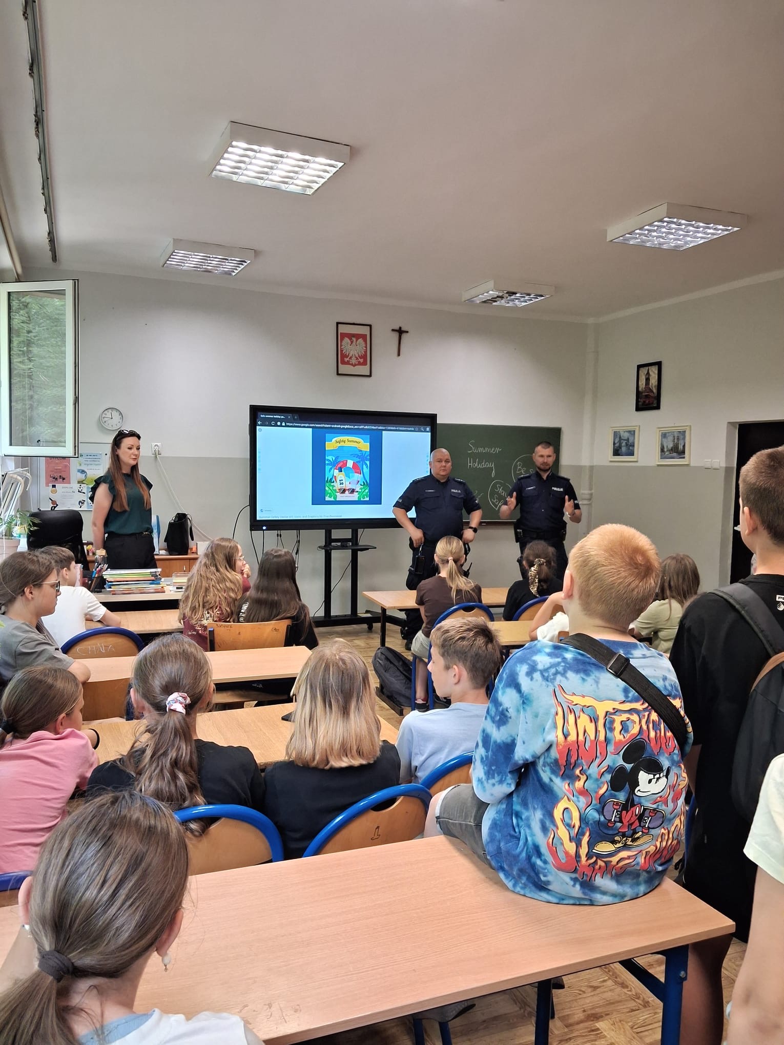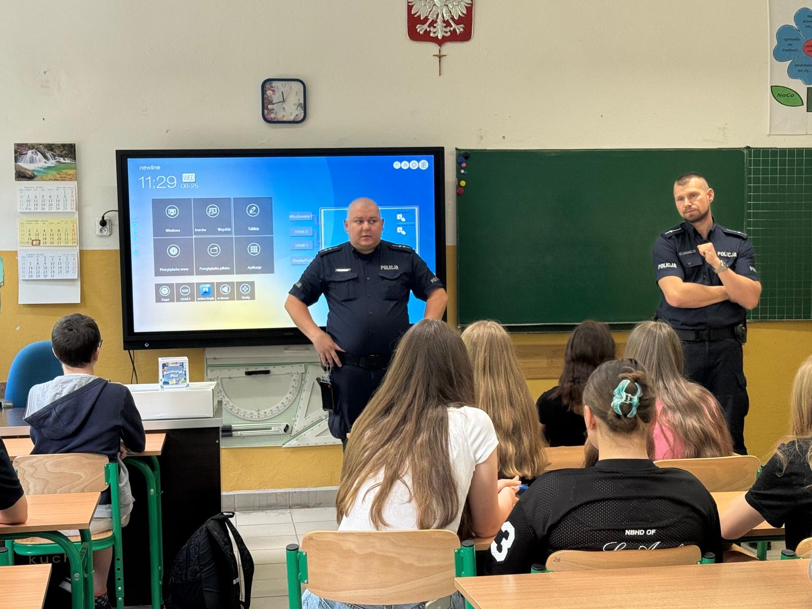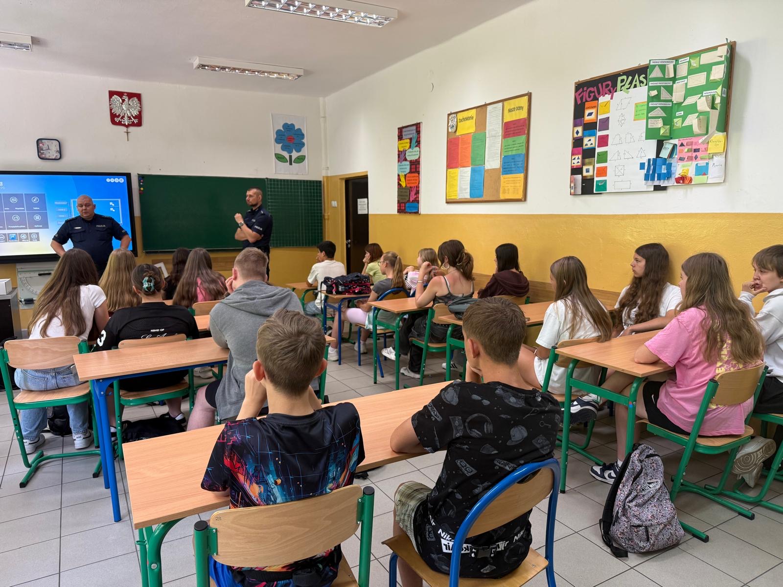 W dniu 25.06.2025r. gościliśmy w szkole policjantów KMP w Siemianowicach Śląskich, którzy przeprowadzili prelekcje dla uczniów dotyczące bezpiecznego zachowania się w czasie wakacji.