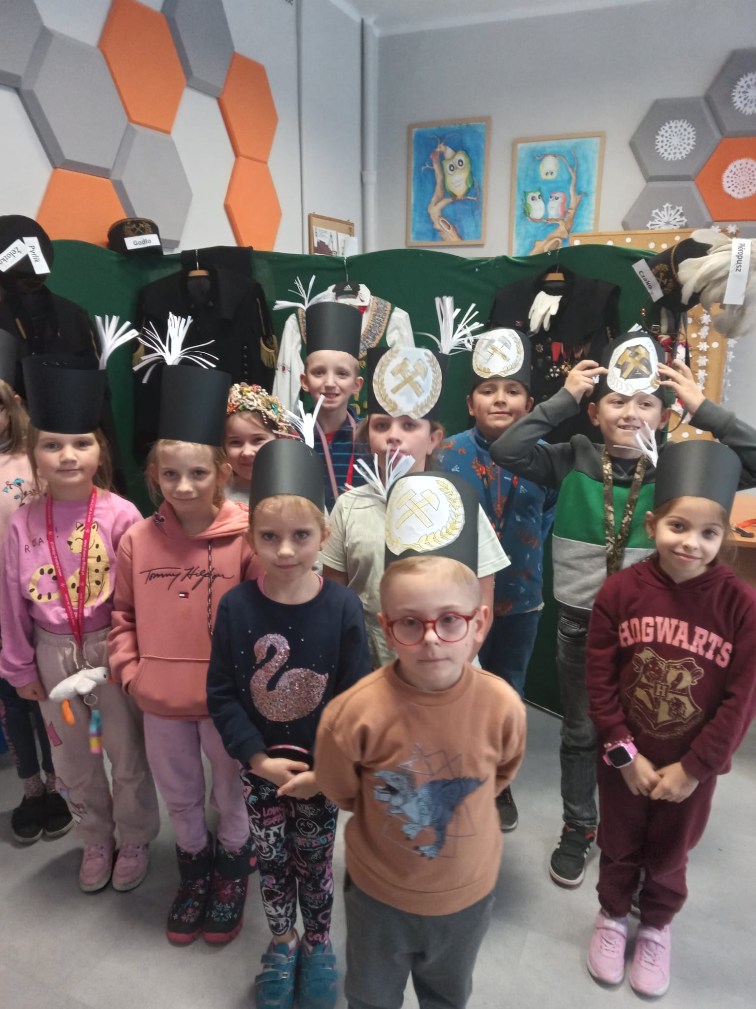 4 grudnia w szkolnej świetlicy obchodziliśmy Dzień Górnika. Uczestnicy zajęć świetlicowych zapoznali się z historią Dnia Górnika, patronką górników - św. Barbarą. Mieli też okazję zobaczenia galowych mundurów górniczych, poznając nazwy elementów tych mundurów. Na zakończenie zajęć uczniowie sami wykonali górniczą czapkę - czako.