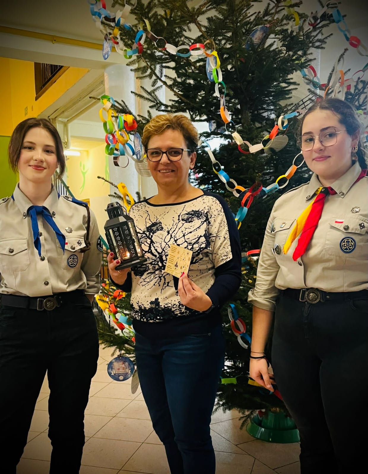 20 grudnia 2023r. harcerki przekazały społeczności naszej szkoły Światełko z Betlejem z najlepszymi życzeniami świątecznymi od Hufca ZHP Siemianowice Śląskie.