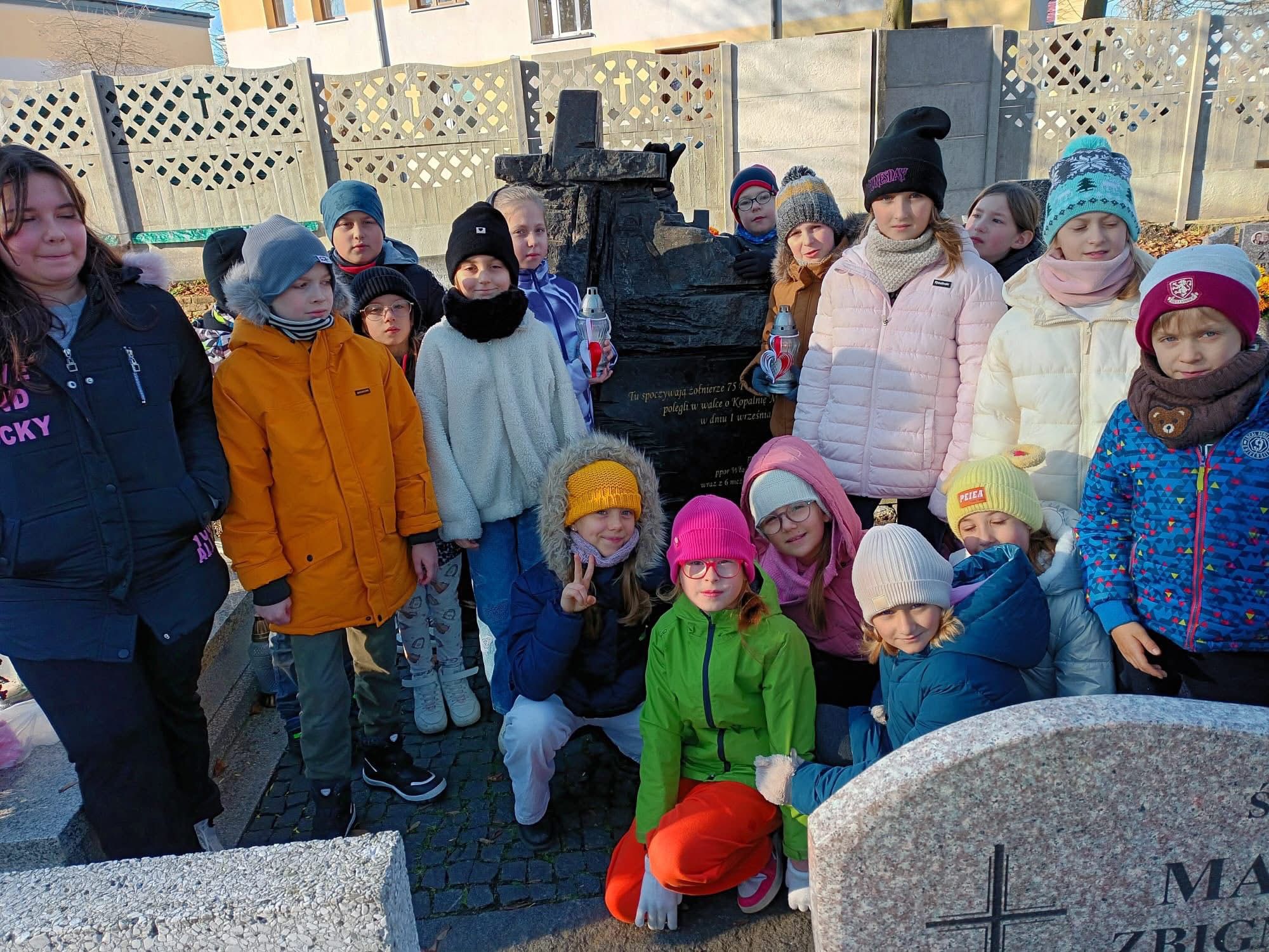 Dzisiaj uczniowie klasy III b wzięli udział w lekcji historii. Lekcja odbyła się przy pomniku upamiętniającym bohaterski czyn żołnierzy 75 Pułku Piechoty, obrońców kop. "Michał".
