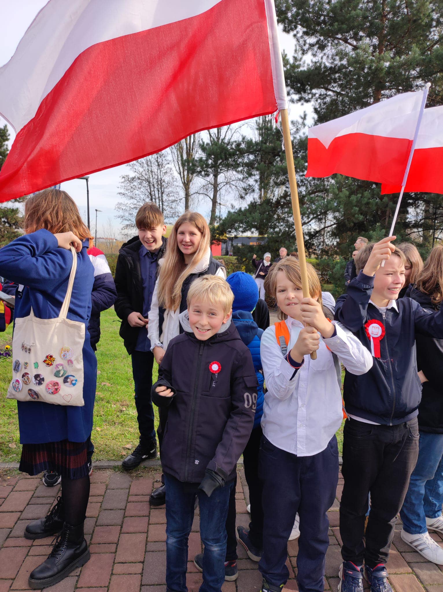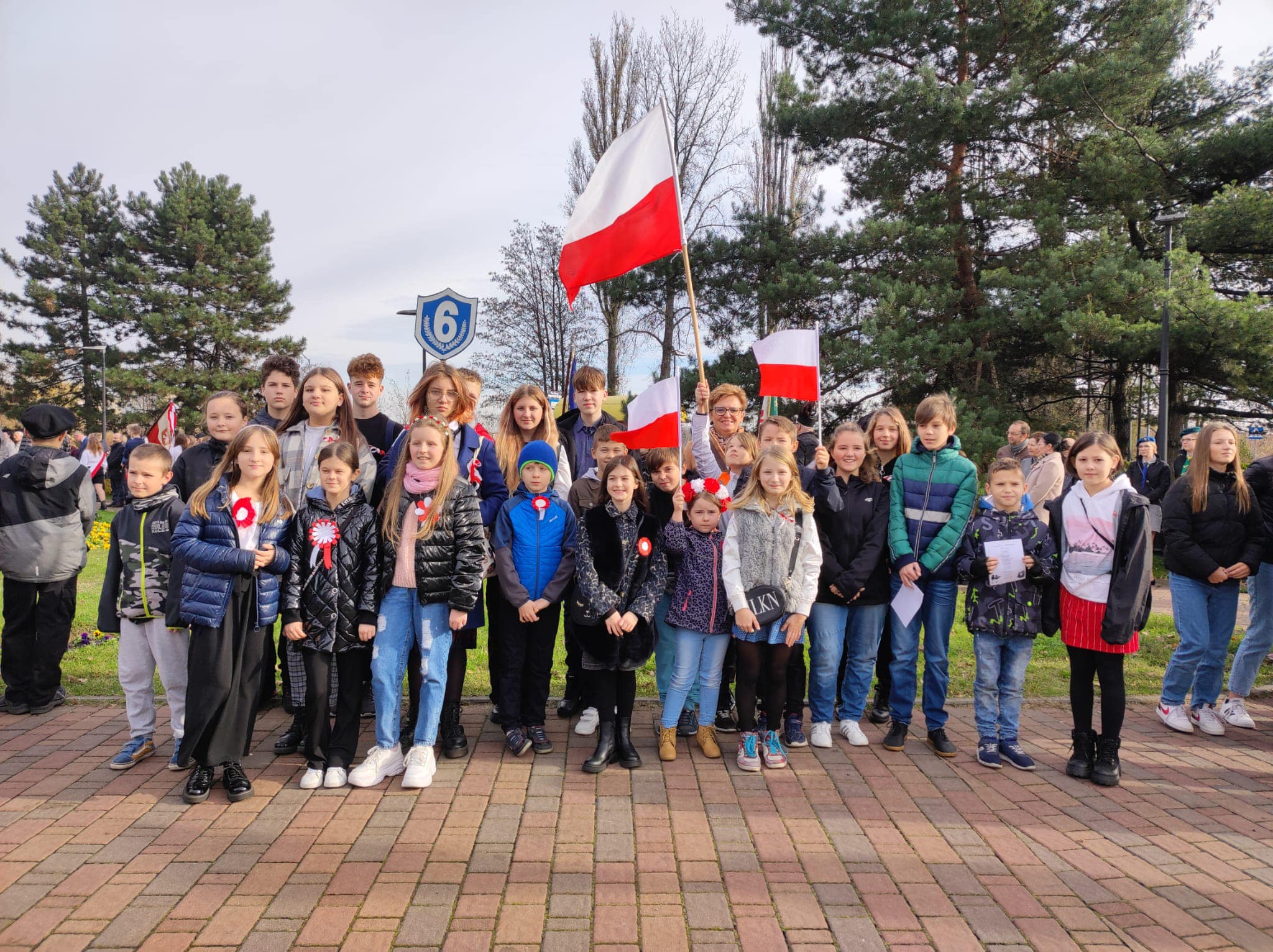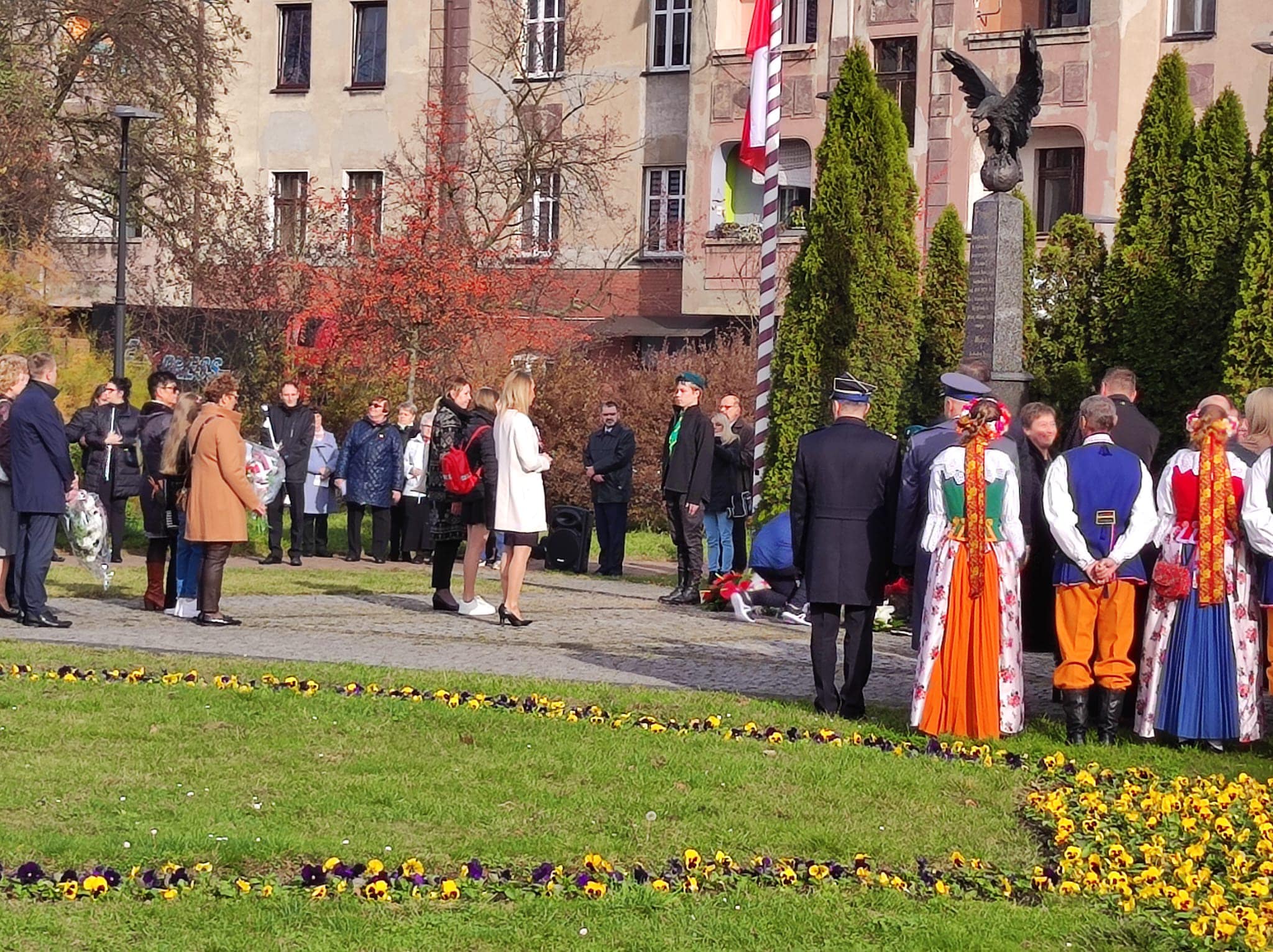 Przemarsz pod pomnik Czynu Niepodległościowego w Siemianowicach Śl. i składanie kwiatów pod pomnikiem z okazji święta Odzyskania Niepodległości.