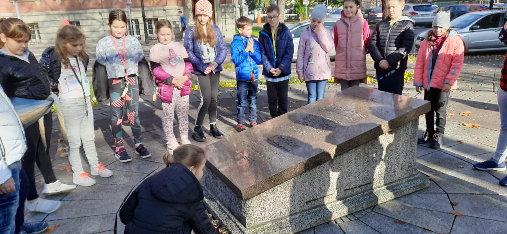 Spacery uczniów na rynek miejski w Siemianowicach Śl., gdzie znajduje się płyta Grodu Nieznanego Żołnierza – palenie zniczy 8 maja z okazji Dnia Zwycięstwa.